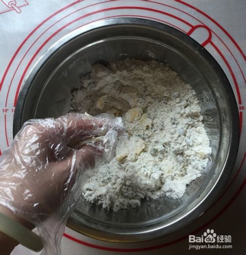 袋一次性手套,让黄油跟粉类均匀的混合。