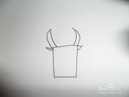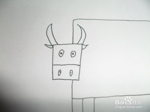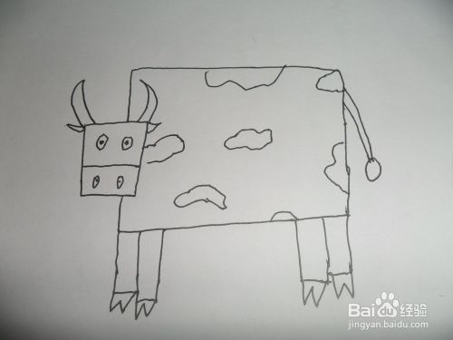用细长方形作为奶牛的四肢,并画出尖三角趾蹄。