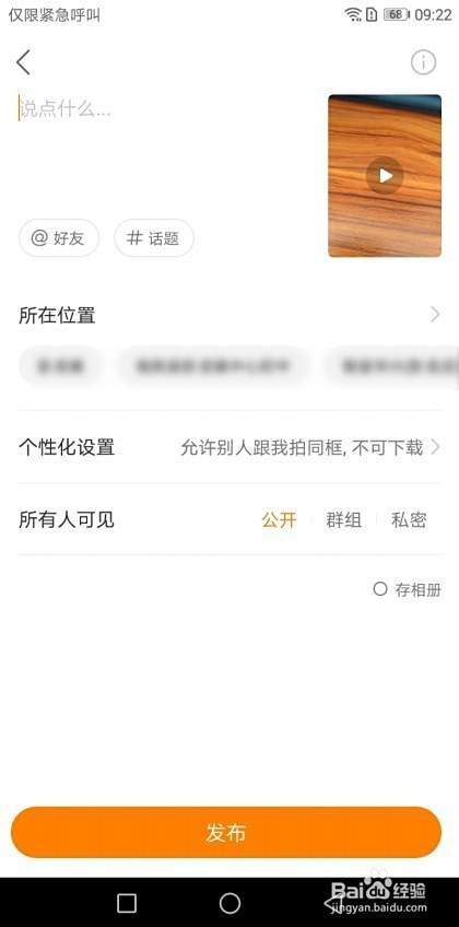 接着就会弹出发布视频的页面,在页面中填写发布的文字后点击“发布”按钮就可以了。
