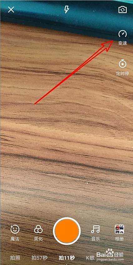 接着在打开的拍摄视频页面中,我们点击右上角的“变速”按钮。