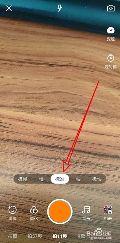 把工具条上的滑块调整到慢的位置,然后再点击拍摄的按钮就可以了。