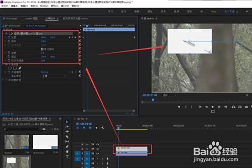 这里施加完预设效果之后发现画中画的效果将视频轨道2视频变的太小了,这时候我们还可以打开效果控件来进行自行设置这个画中画预设得到一个满意的效果。
