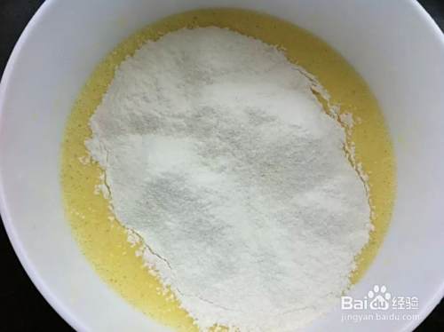 筛入低筋面粉,用翻拌的手法混合均匀。