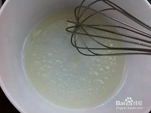水和油加入3分之一的白砂糖搅拌至糖融化。