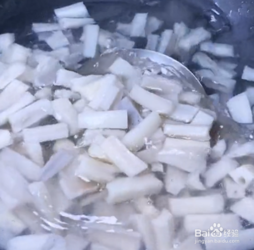 起锅烧水,水开倒入莲藕,焯水2分钟捞出过凉水