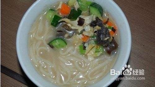 6. 面条在清鸡汤里煮熟,捞起盛碗里,添上刚刚做好的海参木耳黄瓜胡萝卜丁,撒上葱花即可。