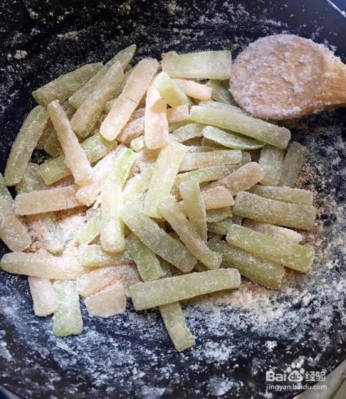 清水泡过的冬瓜条捞出来,锅中放入清水没过冬瓜条即可,水跟冬瓜条一起煮,水开5分钟关火,捞出来沥干水分,一定要沥干水分,这步很重要,水分不够干,会影响炒冬瓜糖的干度!按照比例添加白糖,冬瓜条与白糖比例1:1。