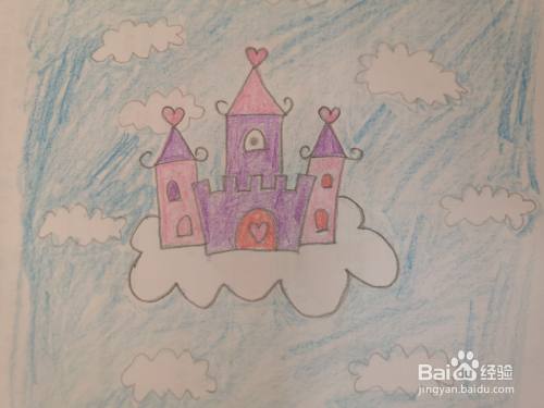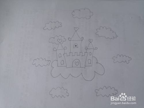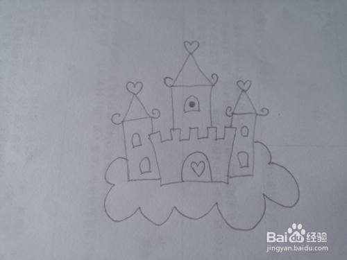 接着画出城堡底下的云朵,这样就是一座在云朵里的城堡了。