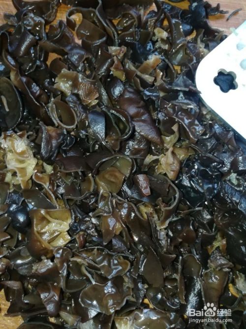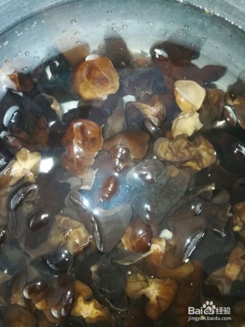 处理木耳。木耳要在摘芹菜前就泡发上。用温水泡发很快就好了。