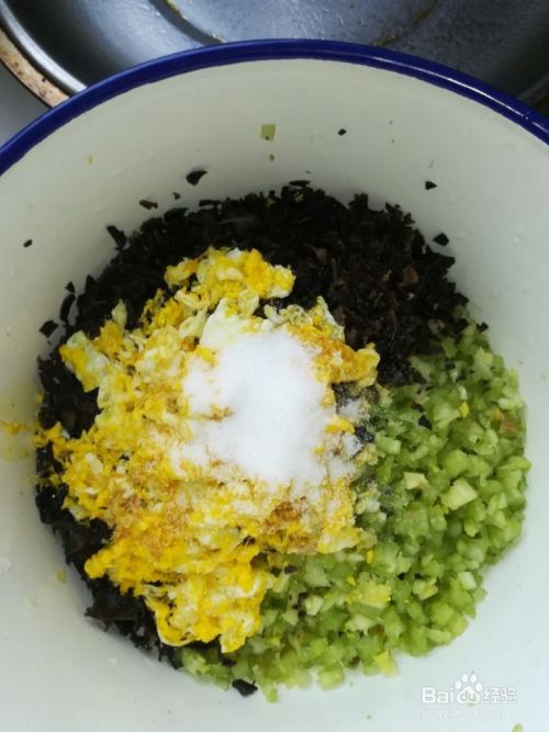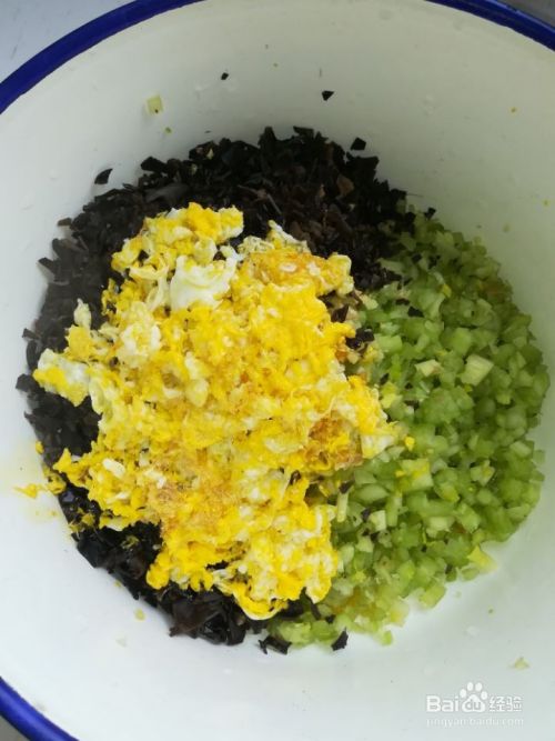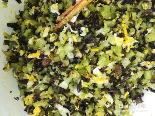 用筷子把所有材料搅拌均匀,很漂亮的颜色,黑木耳,绿芹菜,黄鸡蛋,包出来的水饺让人多吃不少呢。