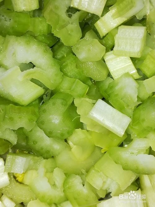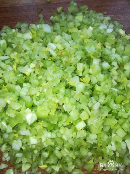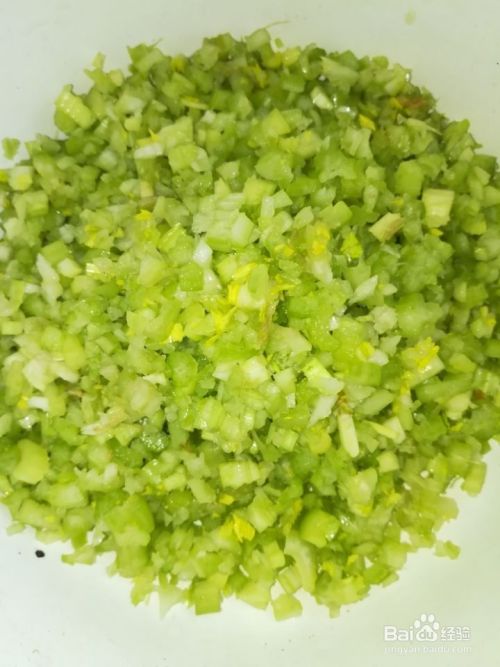 把芹菜剁得细一些后,用手攥攥水,水分很少。放入容器里。