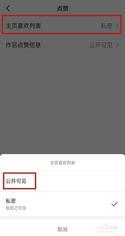 在点赞页面将主页喜欢列表的私密改为公开可见即可。