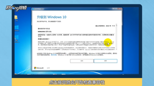 2检查完成之后会提示升级到windows10,点击“接受”就会开始检查兼容性。