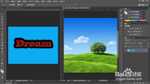 首先将字母素材整体置入到风景图中,完成置入操作后在图层面板生劫歌成图层。