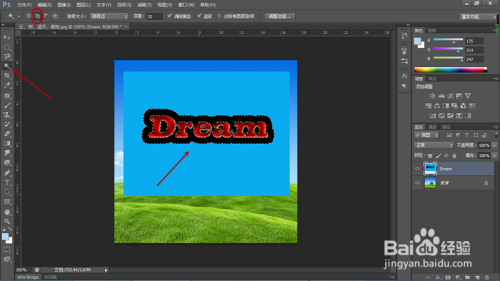 选择工具箱魔术棒工具,在“添加到选区”模式下将字母中黑色边框建立选区。