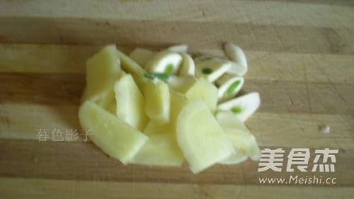 6撒上生抽、老抽、料酒、大料、花椒、白糖、大蒜、葱