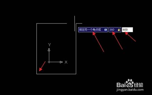 在二维绘图界面下绘制镜面基本框架形状,用矩形工具绘制,点击界面并输入参数,得到600x360的矩形框。
