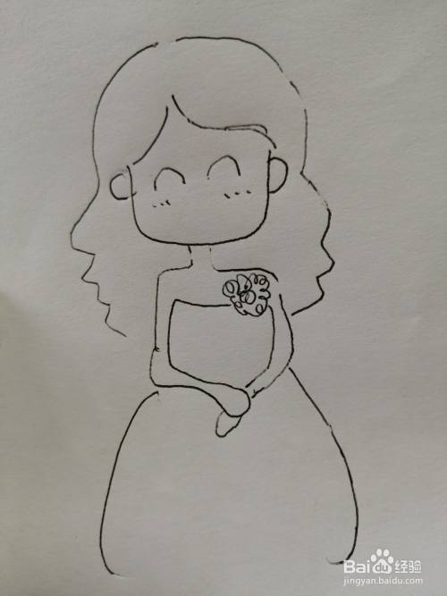 第七步,最后把漂亮的小女孩的裙子画出来。漂亮的小女孩就画好了。