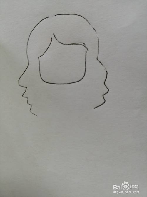第二步,接着在小女孩的头上画出长长的头发,小女孩的头发很漂亮。