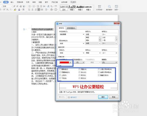 打开字体格式面板,在颜色这里我选择一个红色,可以在预览框看到效果。