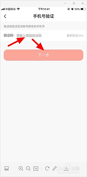 输入验证码,点击“下一步”,提交申请,等待审核并最终确认即可。