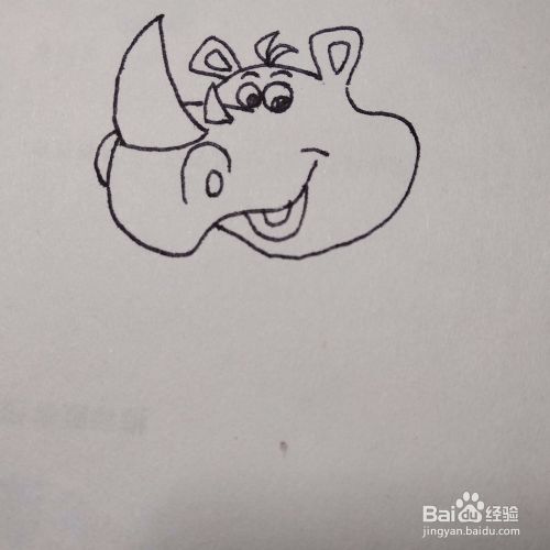 再画出犀牛的嘴巴,这样犀牛的头部就画好了