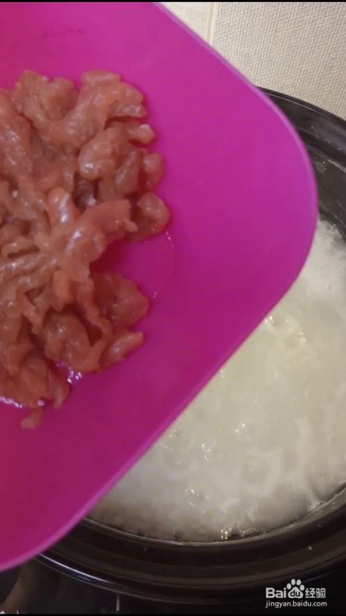 接着放入肉丝和皮蛋,再放入盐,五香粉,姜丝和葱花,搅拌均匀再煮一会,煮出香味,出锅即可开吃啦