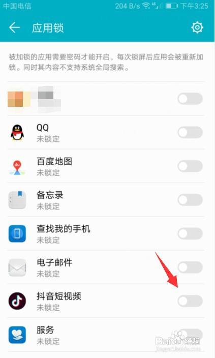 7、接着要给什么应用加锁,点下【开关】就好,如图。