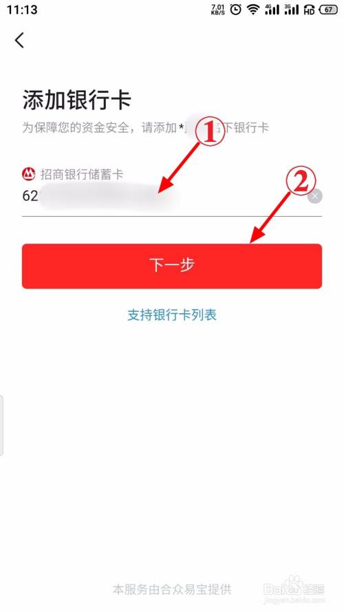 【3】输入 支付密码,填写 银行卡号,点击 下一步;