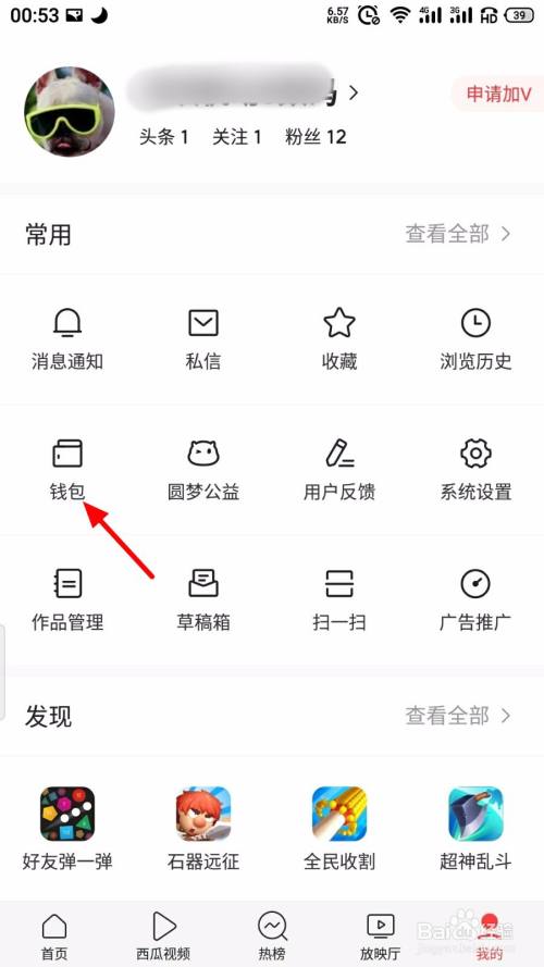 【1】打开 今日头条,进入后,点击 我的>钱包;