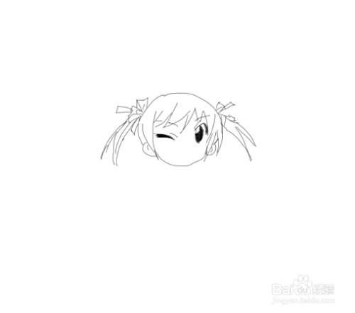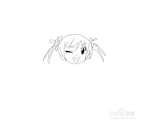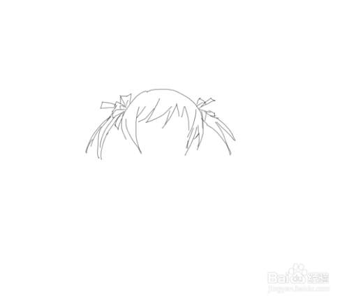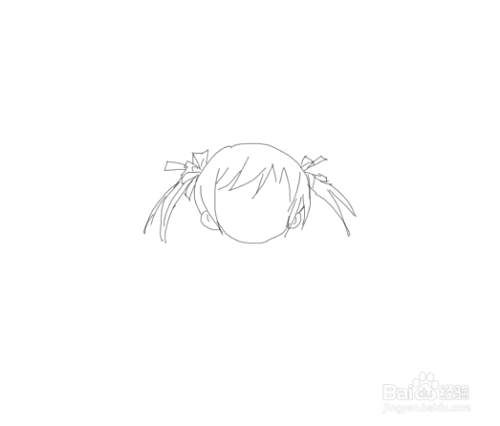 再在画好的头部上面我们再画出小女孩的两只小辫子,然后再画出小女孩的发束,如图所示: