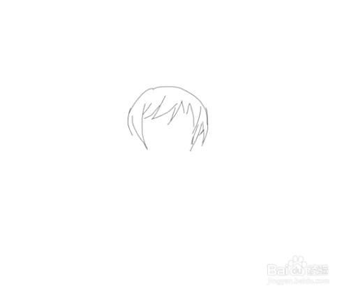 先画出小女孩的头发造型,然后再画出头部上面的刘海,如图所示: