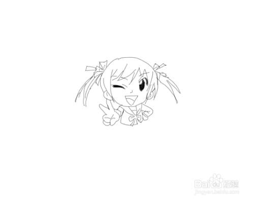画好小女孩的头部之后,子案子啊头部下面画出小女孩的两只胳膊及手部,然后再画出小女孩的身体,如图所示: