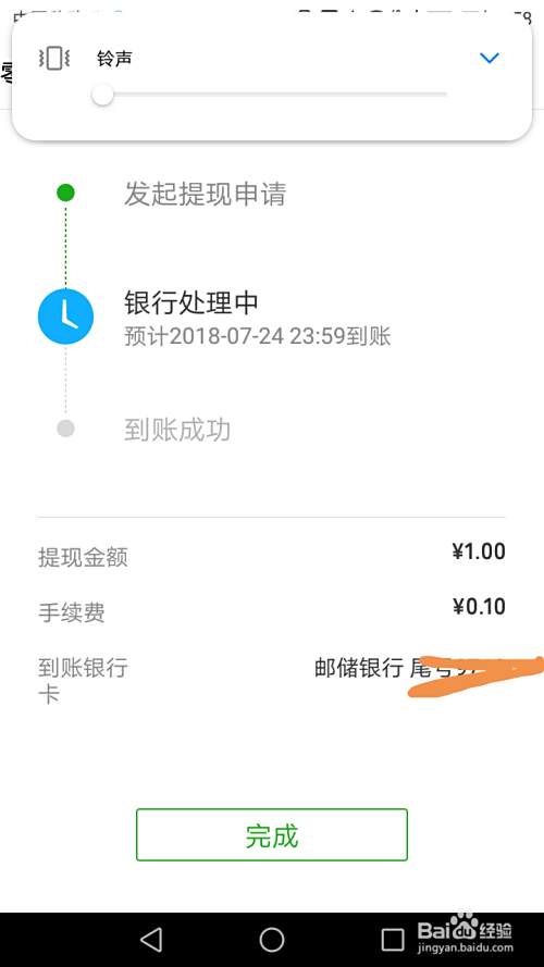 提现以后的界面是显示提现申请提示,银行正在处理中,提现成功之后还会有提现成功的提示。