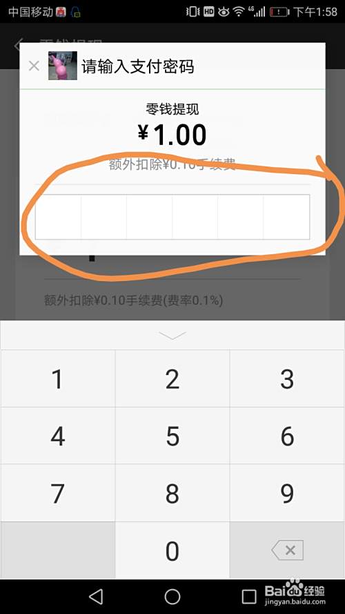输入要体现的金额,这里注意了,提现是要输入密码的,密码是之前自己设置的。