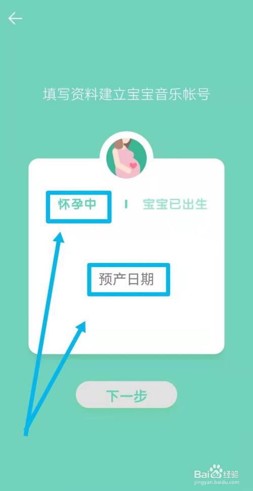 然后点击选择【怀孕中】,输入【预产日期】,并点击【下一步】。