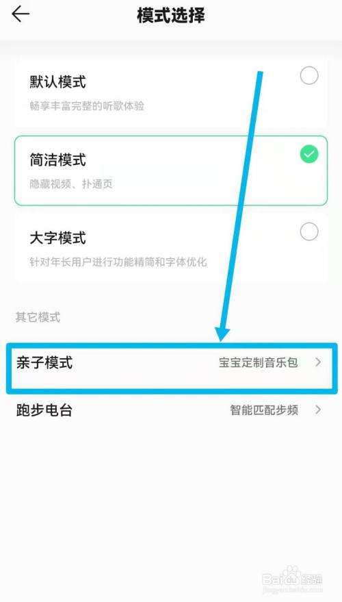 进入【模式选择】选项,点击并进入【亲子模式】选项。