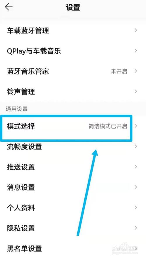 然后在【设置】选项界面选择【模式选择】并点击进入。