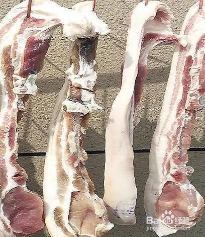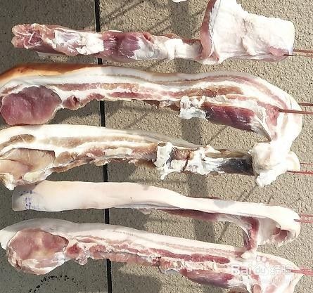 腌好的咸肉可以直接挂至室外风干,如果要清洗需烧开水放至温热后再清洗,不能用生水洗。