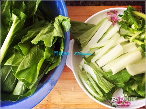 准备一把新鲜的小白菜,将小白菜层层剥开,去除头部比较老的部分,然后放入水中仔细清洗几遍。