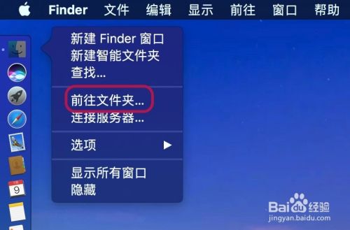 在dock栏上面的finder图标右键,选择前往文件夹。