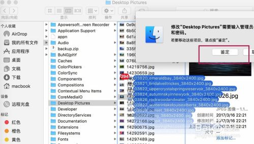 添加壁纸:把需要添加到默认壁纸的图片全选,然后拖入系统默认文件夹,在弹出的菜单选择鉴定,并输入管理员密码即可。