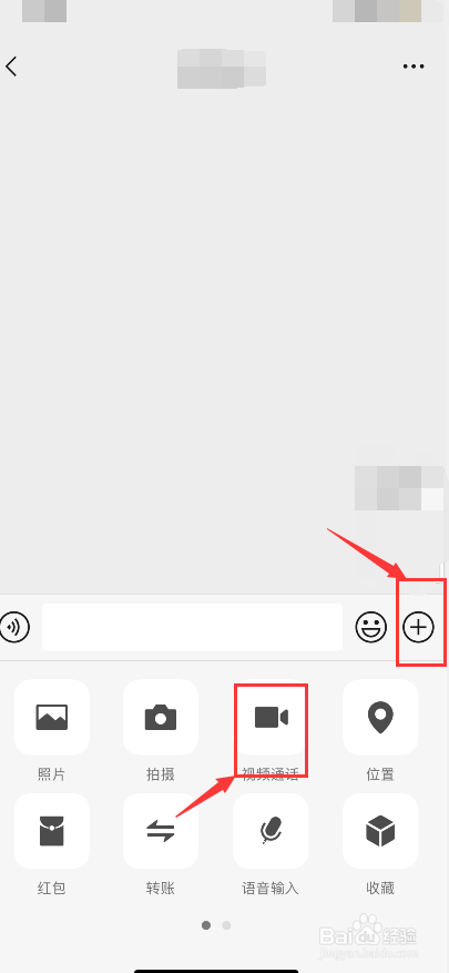 打开登录微信,选择一个进行视频通话的好友进入到聊天页面,点击底部的【+】号,拉起弹窗,选择【视频通话】