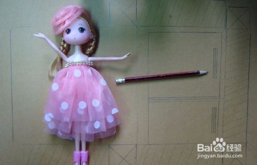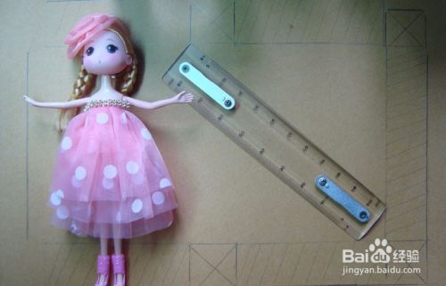 根据芭比娃娃的大小,用铅笔在纸上绘制出长方体盒子的折痕线,若有的地方没画好,可用橡皮清理,避免有多余的折痕线,如图。