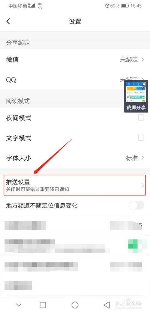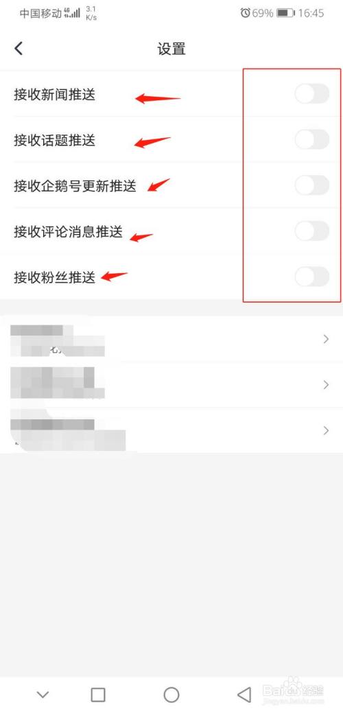 6.点击右侧按钮,打开想要打开的推送项,完成