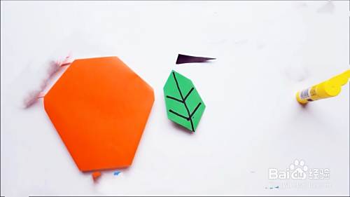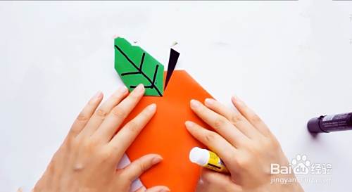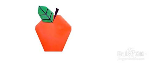 然后用胶水按下面的样式粘在一起,这样一个有叶子的苹果折纸就完成了。如下图所示。