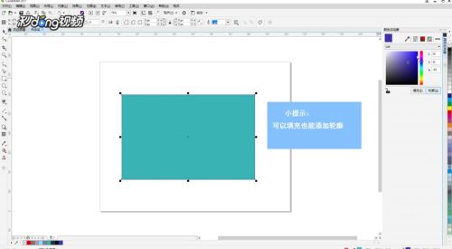 2使用矩形工具绘制出一个矩形,在右边颜色栏直接点击即可填充。