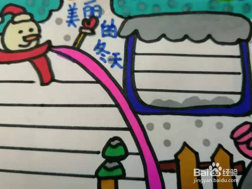 最后,我们写上大标题‘美丽的冬天’,再画上横线,这样我畜撤雁们‘美丽的冬天’手抄报就画好了