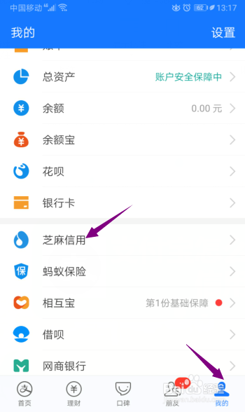 然后点击我的,点击芝麻信用。