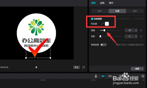 同时我们还可以在其“动画”界面中,开启“灰度抠图”功能,并选中图形中的背景色完成抠图操作。